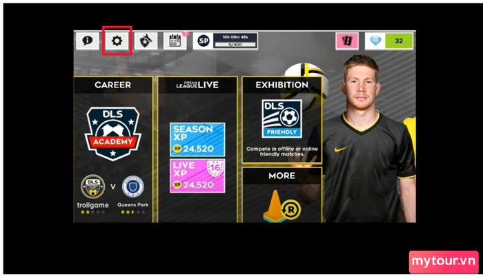 Bước 2: Đăng nhập vào trò chơi. Tại màn hình chính của DLS, bạn chọn biểu tượng cài đặt - biểu tượng bánh răng ở góc trái trên màn hình.