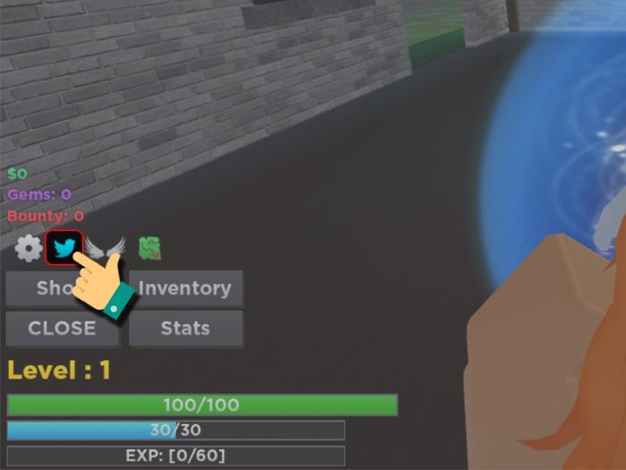 Trong Roblox, đến chế độ chơi Project New World > Tại giao diện chính, bấm Menu ở góc trái > Bấm vào biểu tượng Twitter bird > Nhập Mã Code và nhấn Redeem.