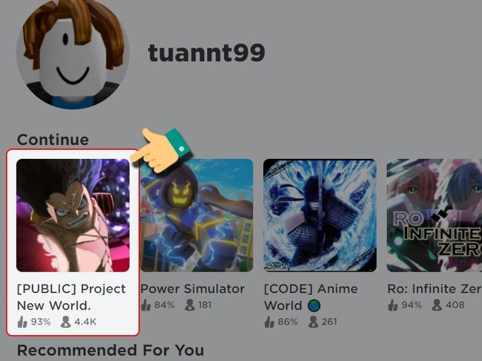 Bước 1: Mở Roblox và chọn chế độ chơi Project New World.