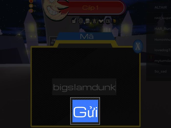 Bước 2: Tiếp theo, trong giao diện game, bạn nhấn vào biểu tượng nhập mã ở phía trên.