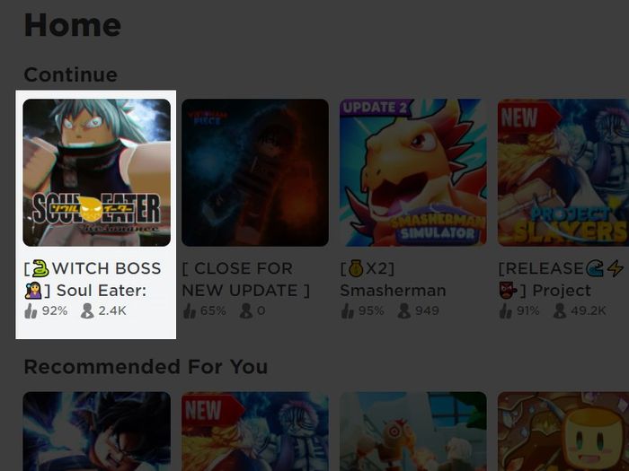 Bước 1: Tại giao diện Roblox, chọn vào game Soul Eater Resonance.