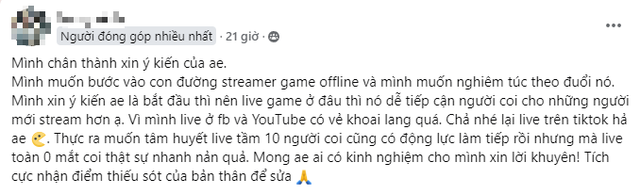 Chia sẻ của game thủ về hành trình trở thành streamer đang nhận được sự chú ý và nhiều lời góp ý quý báu từ cộng đồng mạng.