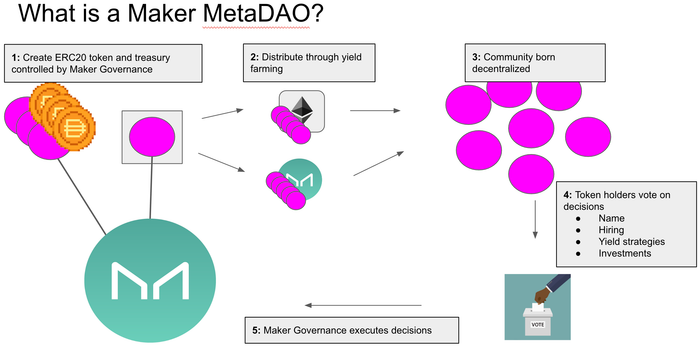 Trong Kế hoạch cuối cùng, các MetaDAO, hay còn được gọi là “subDAO” (DAO con) của MakerDAO, là các tổ chức chuyên biệt với mô hình kinh doanh “thực tế, có lợi nhuận, bền vững và hoàn toàn phi tập trung”. Mỗi MetaDAO sẽ đảm nhận một chức năng cụ thể trong Maker, ví dụ như MetaDAO quản lý Maker Ethereum (MATH, là đồng synthetic ETH trên Maker), MetaDAO quản lý RWA, MetaDAO quản lý Maker’s Node Network (MANO),…