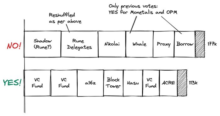 Trong những phút cuối cùng, trong khi Luca gửi thư cảm ơn những người ủng hộ thì Rune lại cố gắng thay đổi số MKR mà ông đã ủy quyền cho các đối tượng khác nhau để tăng khoảng cách giữa phiếu ủng hộ và phiếu phản đối.
