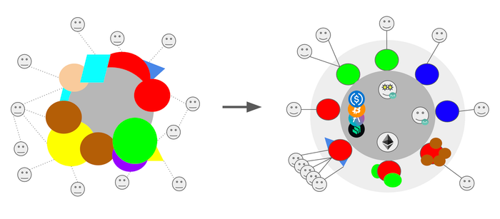 So sánh cấu trúc của MakerDAO trước (bên trái) và sau (bên phải) Endgame Plan, theo quan điểm của Rune Christensen