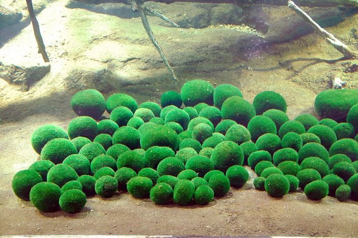 Marimo là dạng sinh vật thủy sinh hiếm gặp, có hình dạng khối cầu màu xanh lục đặc trưng.