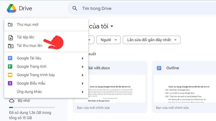 Uploading documents and storing them on Google Drive is the most common action when using this tool. You can upload files or folders from your computer or phone to Drive with simple steps as follows:Step 1: On your computer, open a web browser and access your Drive.