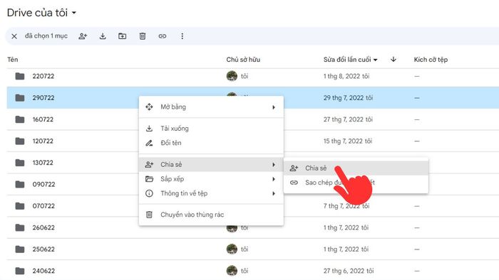 In addition to downloading and storing documents, users often use Google Drive to share documents with others. Detailed guide:Step 1: Access your Drive > find and select the file (or folder) to share > right-click > choose the 'Share' button > click on 'Share' again.