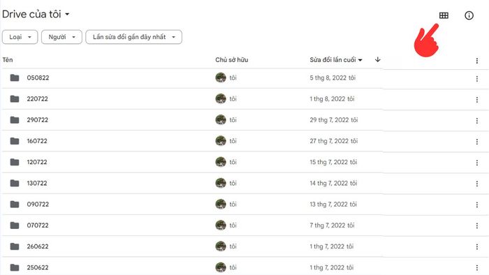 When you open Google Drive, at the top right corner of the screen, you'll see two icons: one in grid format and the other in list format.Grid icon: Grid view mode displays documents as thumbnail images.