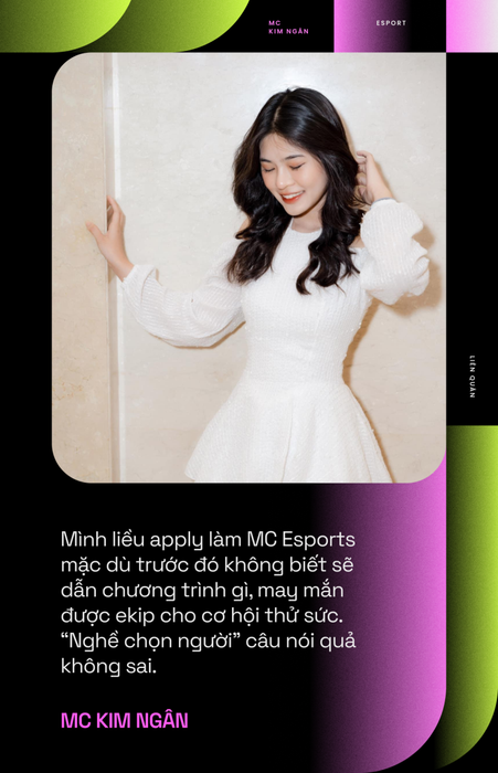 Kim Ngân, MC phỏng vấn sau trận đấu tại ĐTDV, chia sẻ về hành trình đưa cô đến với Esports và nghề MC.