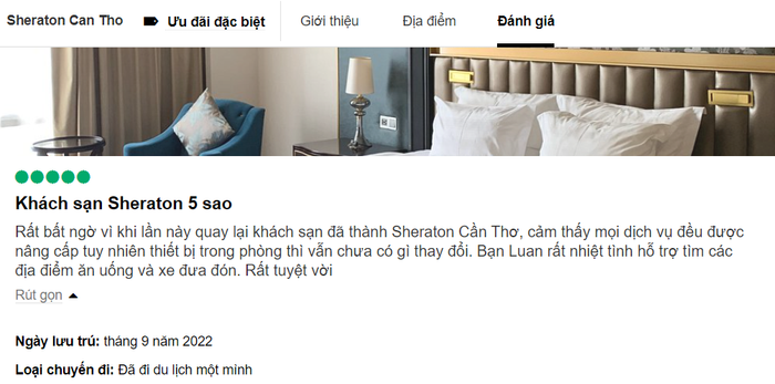 Để có một chuyến du lịch đáng nhớ, hãy lựa chọn nơi lưu trú sang trọng, với phòng nghỉ đẳng cấp và dịch vụ chuyên nghiệp. Sheraton Cần Thơ là sự lựa chọn tốt với dịch vụ 5 sao, nằm tại khu vực Đồng Bằng Sông Cửu Long và là biểu tượng của thành phố Cần Thơ.