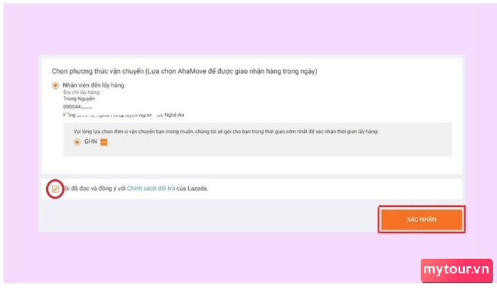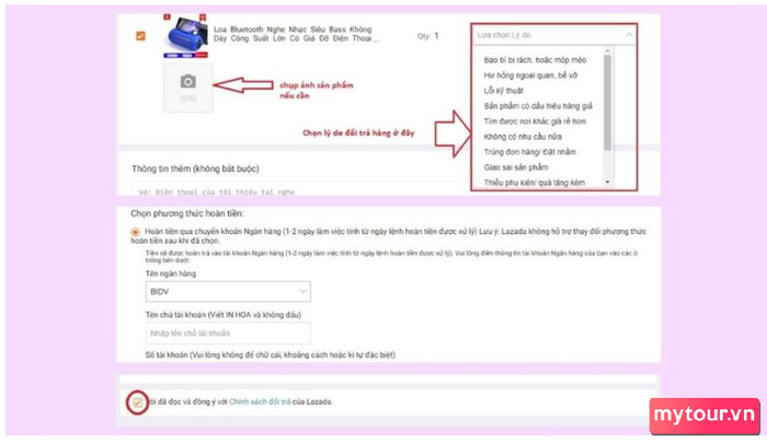 - Đánh dấu vào “Tôi đã đọc và đồng ý với chính sách đổi trả hàng của Lazada”.
