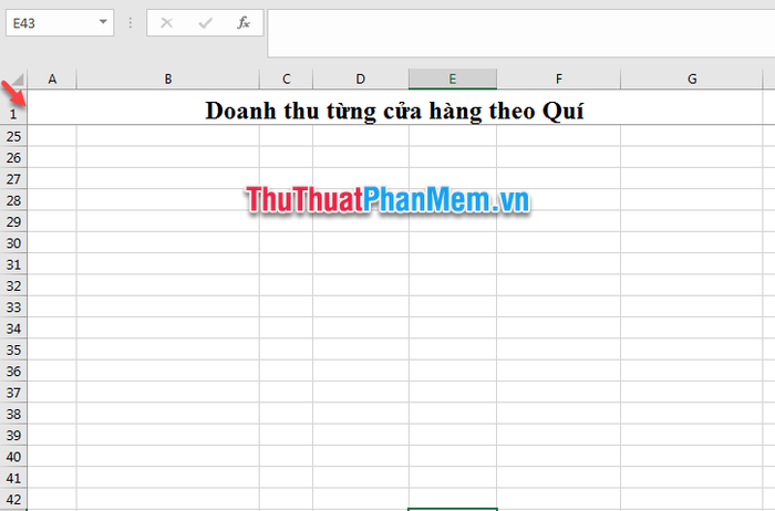 Công cụ Freeze Top Row giữ chặt dòng đầu tiên trong bảng tính, không phụ thuộc vào các dòng đang ẩn. Nếu bạn ẩn dòng 1, thì Freeze Top Row sẽ coi dòng 2 là đầu tiên. Hãy xem ví dụ dưới đây: Dòng số 1 của Excel đã được ẩn.