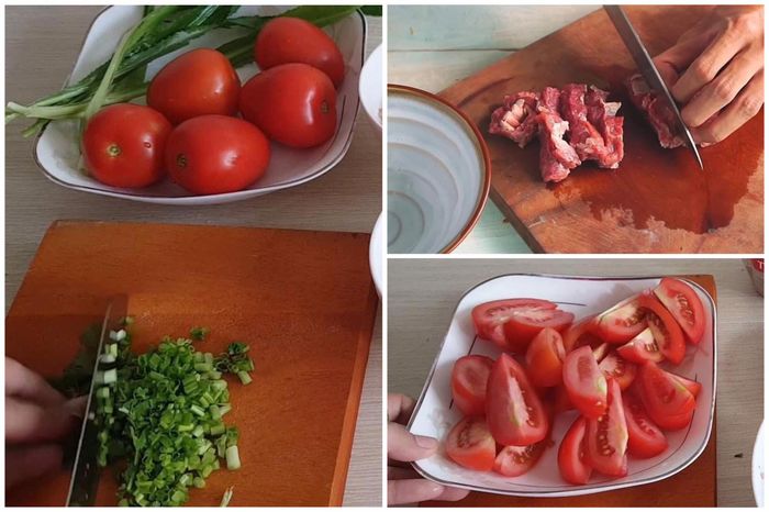 - Cà chua rửa sạch, bỏ cuống, thái múi cau.