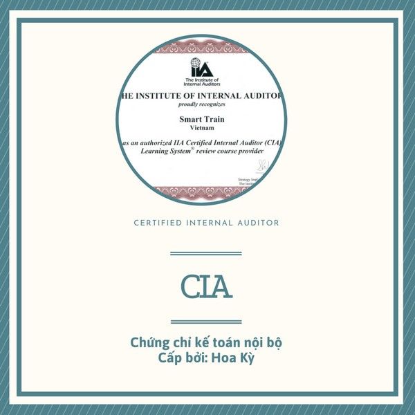 Chứng chỉ kế toán CIA (Certified Internal Auditor) là một chứng chỉ danh tiếng trên toàn thế giới trong lĩnh vực kiểm toán nội bộ. Chứng chỉ này do Hội Kế toán Nội bộ Mỹ (IIA) cấp và khẳng định năng lực chuyên môn và nghiệp vụ của bạn trong lĩnh vực này.