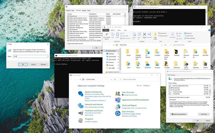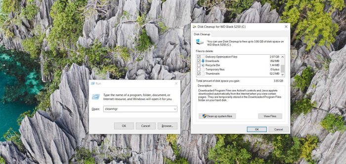 Để sử dụng công cụ Disk Cleanup và dọn dẹp rác ổ đĩa. Công cụ này sẽ giúp bạn giải phóng không gian lưu trữ, đặc biệt là các file tạm và bản cập nhật cũ của hệ điều hành có thể chiếm đến vài chục GB. Tổ hợp Windows + R > nhập cleanmgr > Enter.