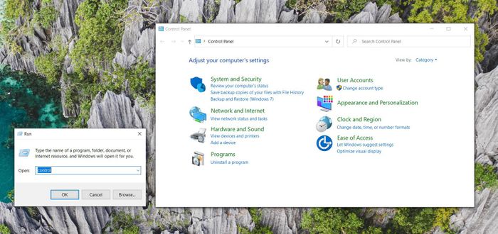 Để mở Control Panel - một công cụ vẫn được Microsoft giữ lại trên Windows 10 thay vì chuyển sang Settings. Control Panel là nơi bạn thường tìm đến khi máy gặp sự cố, chẳng hạn như để chẩn đoán lỗi qua tính năng Troubleshoot, gỡ cài đặt phần mềm desktop trong Add/Remove programs, kiểm tra thông tin hệ thống và nhiều tính năng khác. Tổ hợp Windows + R > nhập control > Enter.