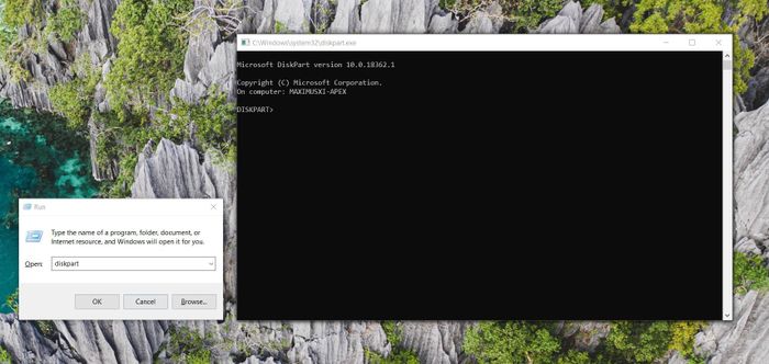 Để mở công cụ phân vùng ổ đĩa bằng lệnh. Mình thường dùng diskpart để làm sạch ổ, rất nhanh chóng và có thể sử dụng trong hầu hết các tình huống, đặc biệt khi Disk Management của Windows không cho phép bạn thay đổi phân vùng hoặc định dạng lại ổ. Tổ hợp Windows + R > nhập diskpart > Enter.