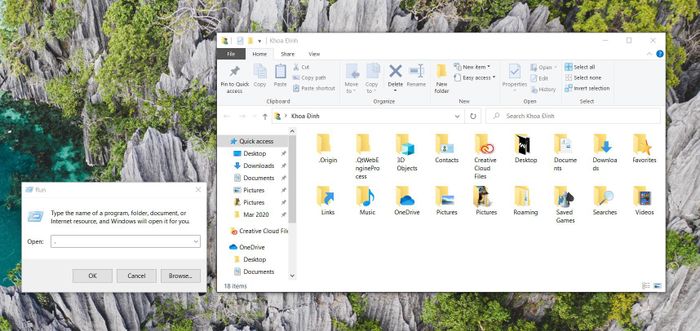 Để mở File Explorer ở thư mục Quick access, nhập dấu chấm . và nhấn Enter. Để mở File Explorer ở ổ đĩa C:, nhập \ và nhấn Enter. Để mở File Explorer ở thư mục người dùng (Users), nhập .. và nhấn Enter.
