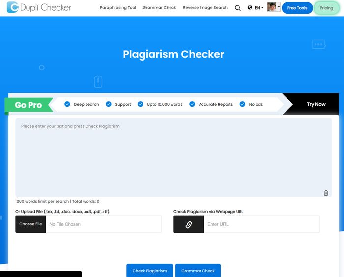 Liên kết: https://plagiarismdetector.net/