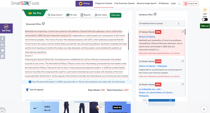 Liên Kết: https://smallseotools.com/plagiarism-checker/