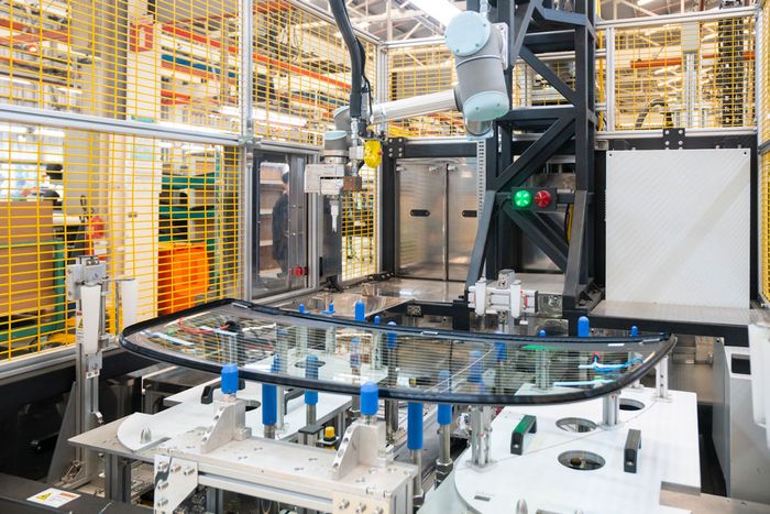Trong quy trình lắp ráp, việc bơm keo cho kính chắn gió phụ thuộc rất nhiều vào độ chính xác của đường keo trên chu vi kính.