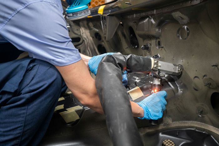 Công nghệ bơm keo kính chắn gió bằng robot đã được áp dụng để đảm bảo tính chính xác cao trong quy trình lắp ráp.