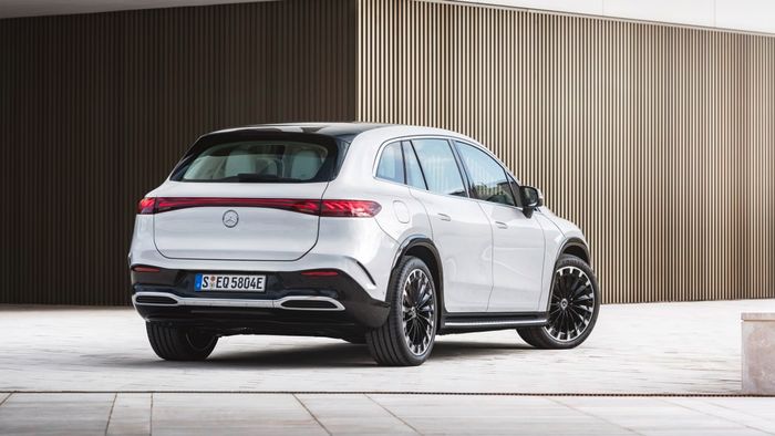 Về mặt ngoại thất, Mercedes-Benz EQS phiên bản SUV giữ nguyên vẻ đẹp của phiên bản sedan. Đáng chú ý, đèn hậu phía sau của bản SUV có thiết kế giống như ở bản sedan. Tuy nhiên, để phù hợp với dáng vẻ của một chiếc SUV, cột A đã được đẩy về phía trước và cột D được tăng cường độ dày.