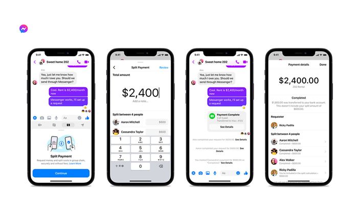Nhóm phát triển ứng dụng Messenger thông báo rằng ứng dụng này sẽ thử nghiệm tính năng “Chia tiền” - một tính năng giúp người dùng chia sẻ và trả hóa đơn cũng như các chi phí trực tiếp trên Messenger. Công ty cho biết, tính năng mới sẽ giúp người dùng có thể chi trả các khoản tiền một 'miễn phí và nhanh chóng' cho nhau thông qua Messenger.