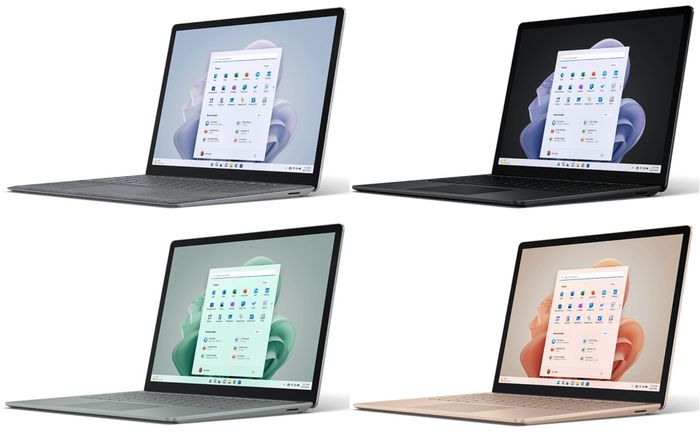 Surface Laptop 5 và Surface Laptop 4 có kích thước giống hệt nhau và chỉ nặng hơn vài gram. Microsoft đã thêm màu Sage - màu xanh lục nhạt vào danh sách màu sắc, cùng với Platinum, Matte Black và Sandstone. Chất liệu vải Alcantara cũng được sử dụng cho chiếu nghỉ tay với màu vỏ Platinum. Các tùy chọn màu sắc và hoàn thiện được cung cấp cho phiên bản 13,5', trong khi phiên bản 15' chỉ có 2 màu là Platinum và Matte Black.Giá của các phiên bản Surface Laptop 5Phiên bản 13,5'- Core i5, 8 GB, 256 GB - 999 USD