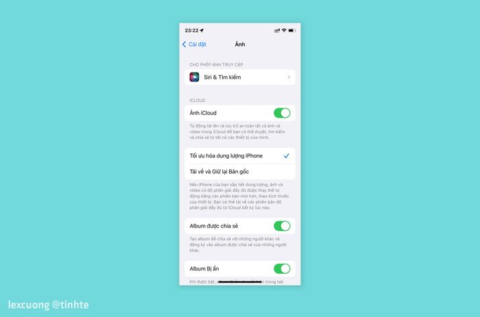 - Bật chế độ Tối ưu dung lượng iPhone / iPad: Điều này cho phép hệ thống xóa ảnh từ thiết bị và lưu trữ trên iCloud. Trên thiết bị, ảnh chỉ hiển thị dưới dạng thumbnail, và chỉ khi bạn chọn xem thì nó mới được tải xuống từ đám mây.