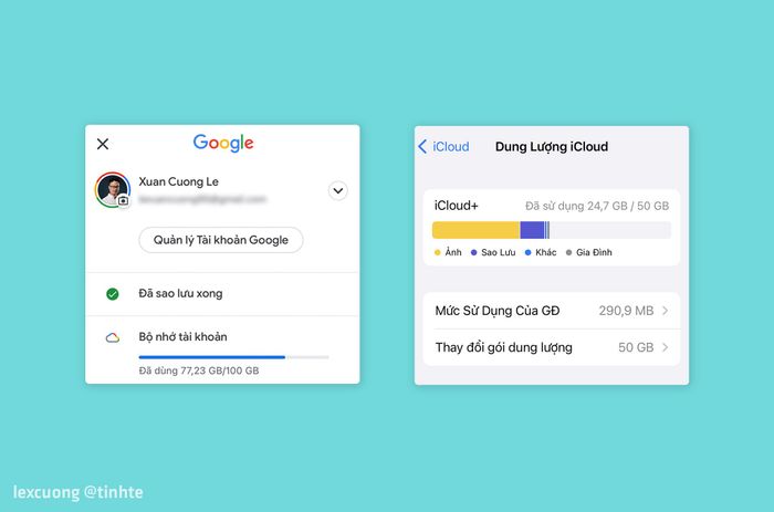 Mình đã mua 50GB iCloud và 100GB Google để đồng bộ và lưu trữ dữ liệu cho công việc. Với giá chỉ 19k/tháng cho iCloud và 450k/năm cho Google, tổng chi phí trong 1 năm là 678k, rất tiết kiệm.Mua 100GB Google One để lưu trữ hình ảnh.
