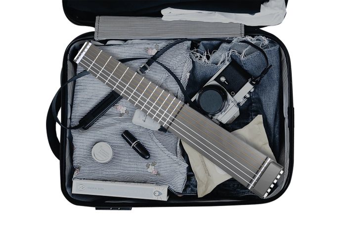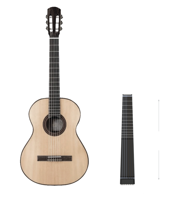 Theo trang Music Radar, nhạc cụ này được thiết kế bởi Augusto Filocamo & Diego Spina, là một cây đàn guitar một mảnh có thể chơi nhạc bất cứ lúc nào, ở bất cứ nơi đâu. Với kích thước nhỏ gọn, bạn có thể dễ dàng mang theo trong ba lô hoặc vali du lịch. Sản phẩm được thiết kế qua cuộc trò chuyện và trao đổi nguyên mẫu 3D qua email, mang lại cây đàn nhỏ gọn nhưng vẫn đảm bảo chất lượng âm thanh tuyệt vời, chế tạo từ nhựa ABS trên khung nhôm.