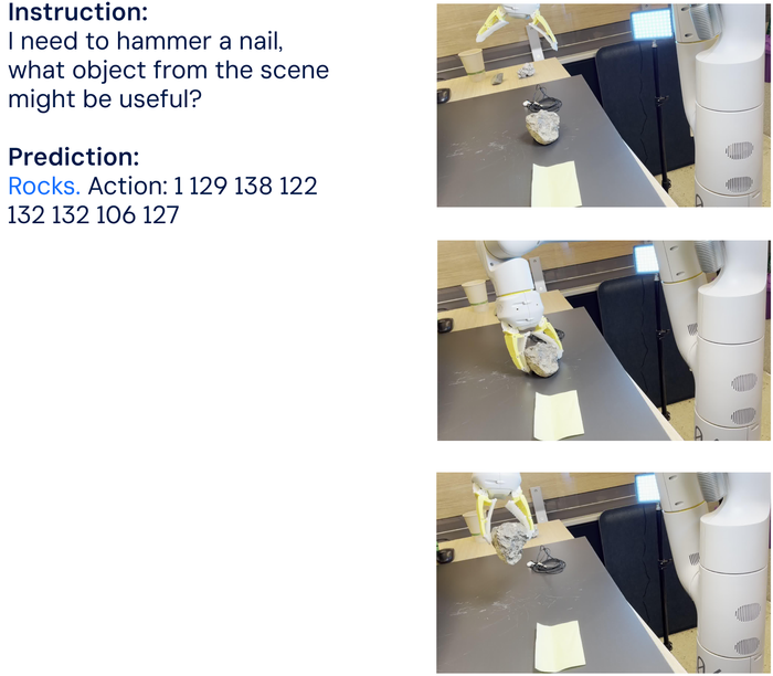 Đáng chú ý, mô hình có thể sử dụng lý thuyết cơ bản để theo dõi các lệnh mới từ người dùng. Ấn tượng là nó thậm chí có thể thực hiện lý thuyết ngữ nghĩa đa giai đoạn. Ví dụ, khi được chỉ đạo chọn một đối tượng có thể được sử dụng như một cái búa, RT-2 đã định danh đúng một viên đá làm lựa chọn tốt nhất.