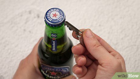 Đặt một chiếc chìa khóa cứng dưới nắp chai và vặn chìa lên cho đến khi nghe thấy tiếng nắp chai bật ra.