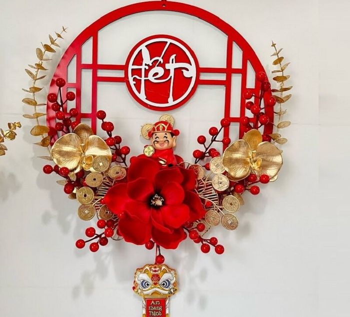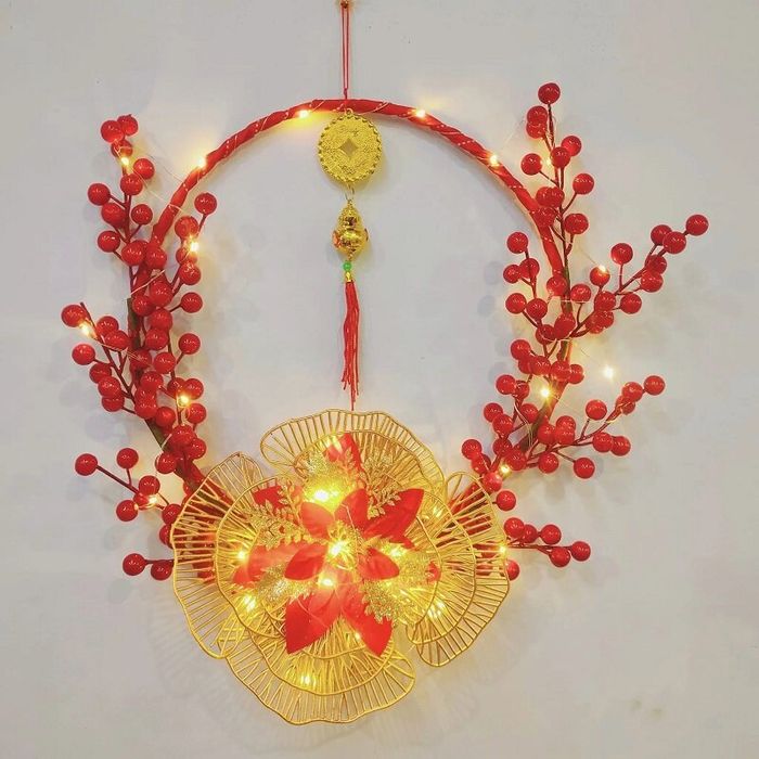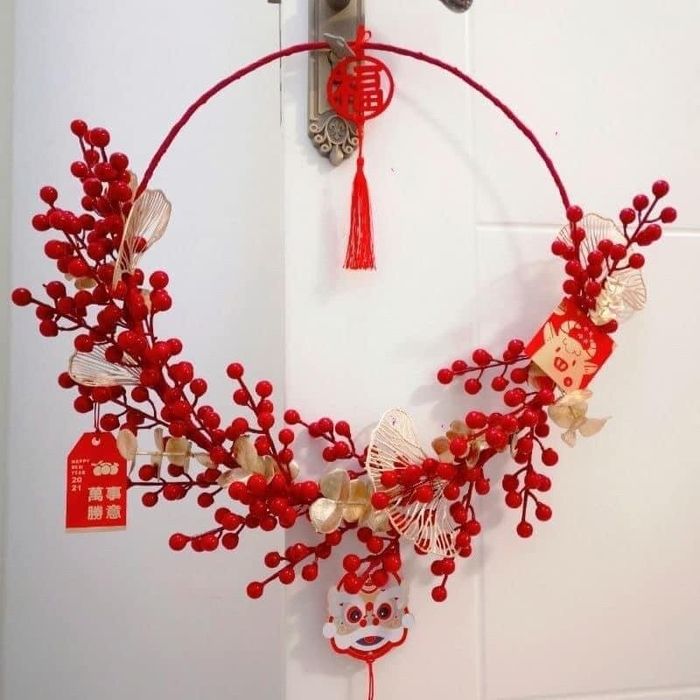 Ngoài cách trang trí như trong mẫu, bạn có thể tùy chỉnh theo sở thích và các vật dụng trang trí có sẵn trong nhà để tạo ra những mẫu vòng trang trí Tết đẹp mắt, mới lạ hơn.