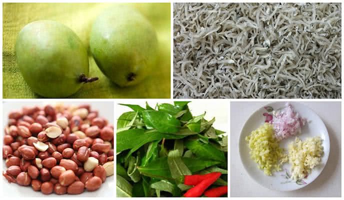 Nguyên liệu cho món nộm xoài xanh cá cơm