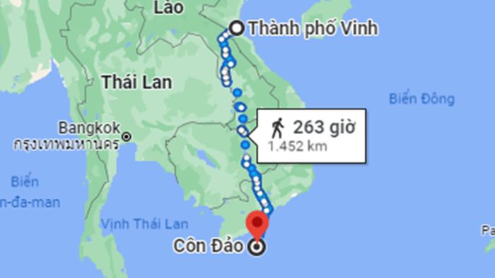 Khoảng cách từ Vinh đến Côn Đảo qua đường thủy là bao nhiêu km?