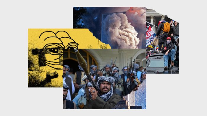 Khi Kabul sụp đổ vào giữa tháng Tám, một lời kêu gọi hùng hồn tràn ngập các nền tảng mạng xã hội trên toàn cầu: một cuộc chiến. Nhịp trống số hóa có thể nghe được qua các bài đăng trên Facebook, các dòng nhận xét trên Instagram và các kênh Telegram. Nó được hỗ trợ bởi những nhân vật số hóa hiện nay trở nên quen thuộc trên internet đến mức chúng được biết đến bởi tên đơn: Pepe, Wojak và GigaChad. Những người đăng các hình ảnh châm biếm không chỉ là các thành viên của alt-right, mặc dù họ cũng đoàn kết xung quanh lời kêu gọi đó, mà còn là các chiến binh trẻ, họ đang ghép một thẩm mỹ trực tuyến mới lấy cảm hứng từ những troll nổi tiếng nhất trên thế giới.