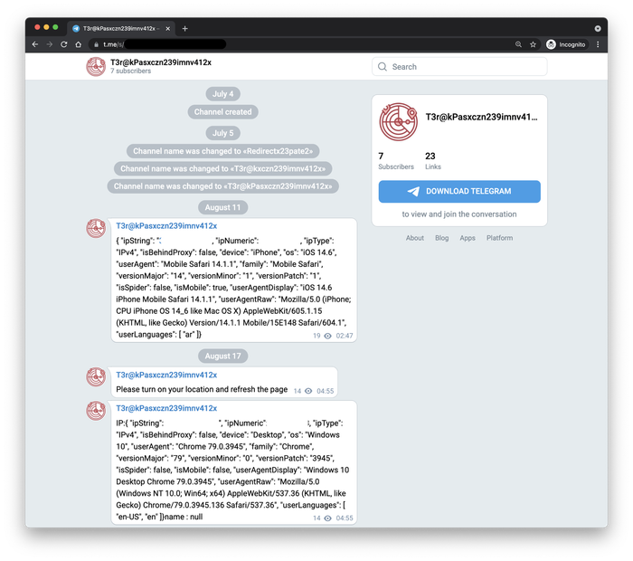 Khi nhóm hacker Iran APT35 muốn biết liệu một trong những mồi câu kỹ thuật số của họ đã thu hút được người dùng hay không, họ chỉ cần kiểm tra Telegram. Mỗi khi ai đó truy cập một trong những trang web giả mạo mà họ đã thiết lập, một thông báo sẽ xuất hiện trong một kênh công khai trên dịch vụ nhắn tin, chi tiết về địa chỉ IP, vị trí, thiết bị, trình duyệt của người tiềm năng và nhiều thông tin khác. Đó không phải là thông báo đẩy; đó là thông báo lừa đảo.