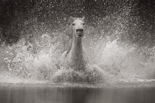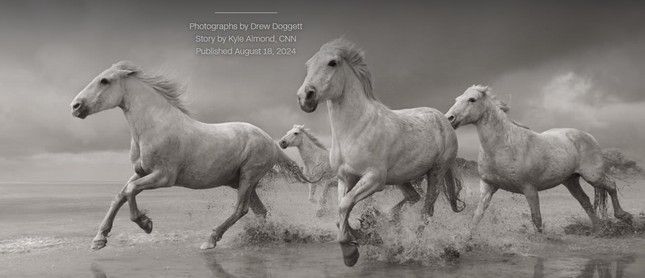 “Đôi mắt lớn, đen và đầy biểu cảm cùng sự tự tin bẩm sinh của ngựa Camargue làm nổi bật vẻ đẹp hoang sơ và táo bạo của chúng,” Doggett viết trong cuốn sách. “Chúng di chuyển nhanh nhẹn, không chút do dự và lao qua nước theo cách tự nhiên vốn có trong bầy đàn.”