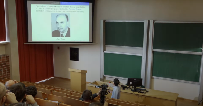 Giáo sư Phạm Hữu Tiệp trong một buổi giảng về giả thuyết của Brauer.