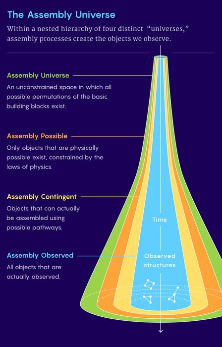 Do đó, lý thuyết lắp ráp “cung cấp một khung để thống nhất mô tả về sự lựa chọn trong vật lý và sinh học,” Cronin, Walker và đồng nghiệp viết. “Một đối tượng 'được lắp ráp' càng nhiều, càng cần có nhiều lựa chọn để nó tồn tại.”