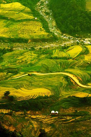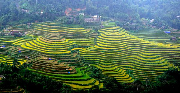 Ai đến Sapa đều trầm trồ khen ngợi vẻ đẹp của những thửa ruộng bậc thang. Những thửa ruộng bậc thang, dù to hay nhỏ, đều được “chạm khắc” trở nên thuận mắt và dễ canh tác. Trong số đó, có những cánh đồng bậc thang rộng hàng trăm hecta ở Tả Van, Lao Chải, Tả Phìn… giống như những bức tranh phong cảnh khổng lồ với những đường nét uốn lượn mềm mại, do những “họa sĩ chân đất” sáng tạo ra.