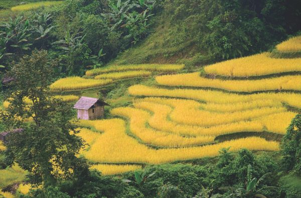 Trong khoảng tháng 9 và 10, trên các con đường Tây Bắc, lớp áo vàng của mùa vàng bậc thang rực rỡ. Mùa vàng là thời điểm lúa chín đồng loạt trên những thửa ruộng bậc thang hùng vĩ. Bạn không nên bỏ lỡ cơ hội hiếm có này để chiêm ngưỡng vẻ đẹp tuyệt vời.