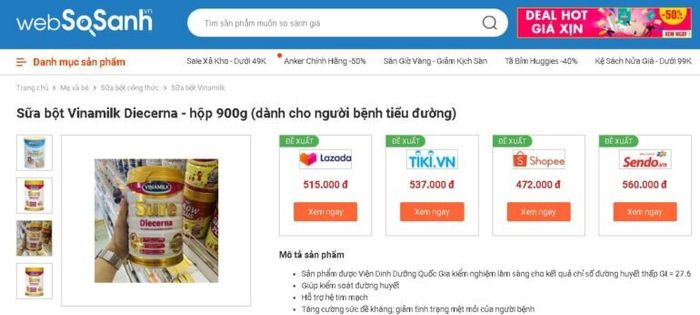 | 7 | Sữa bột Vinamilk Sure Diecarna 900g | 472.000 |