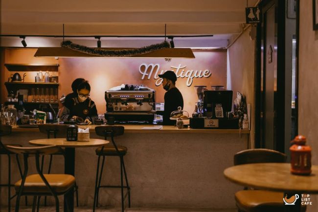 Quầy pha chế tại Mystique Coffee tạo nên một không gian sáng tạo.