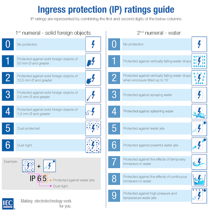 The International Electrotechnical Commission is the body behind the IP ratings guide.International Electrotechnical Commission