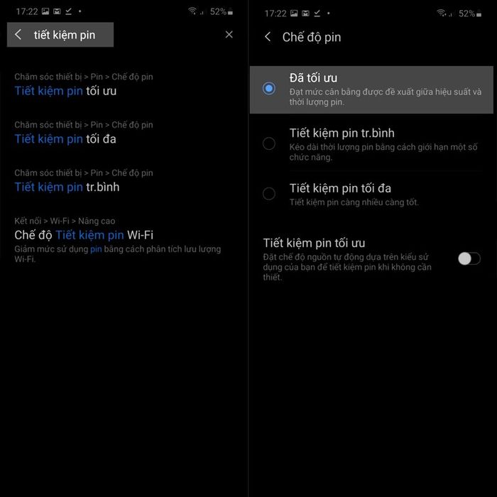 Khi sử dụng chế độ tiết kiệm pin, điện thoại sẽ tự động giảm hiệu suất và tắt các tính năng không cần thiết để tối ưu hóa thời lượng pin. Hãy vô hiệu hóa các chế độ tiết kiệm pin không cần thiết hoặc thiết lập chúng ở mức tối ưu để đảm bảo cân bằng giữa hiệu suất và thời lượng pin.