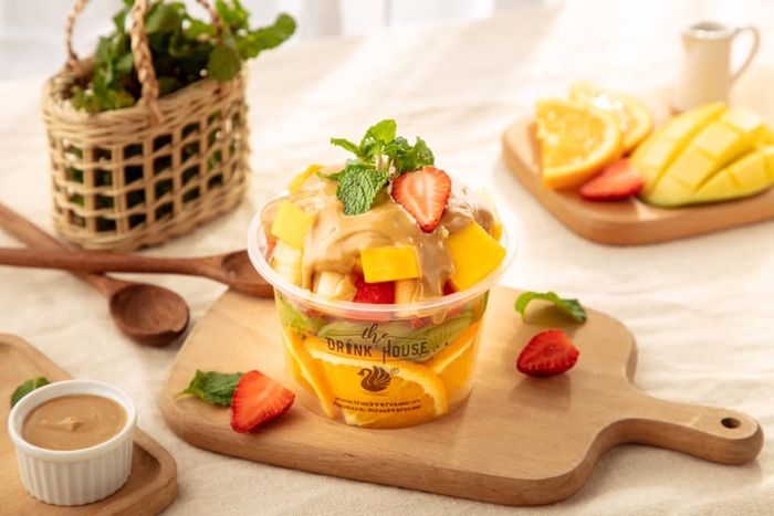Điều hấp dẫn tại The Drink House là sự đa dạng màu sắc của các loại hoa quả. Trái cây được lựa chọn kỹ lưỡng, tươi ngon, chín mọng. Để tăng thêm hương vị béo ngậy, thơm ngon, quán còn kết hợp với nhiều loại sốt như nước cốt dừa, sốt đường hổ trân châu, sốt cheese mặn, sữa đặc, kem sữa….